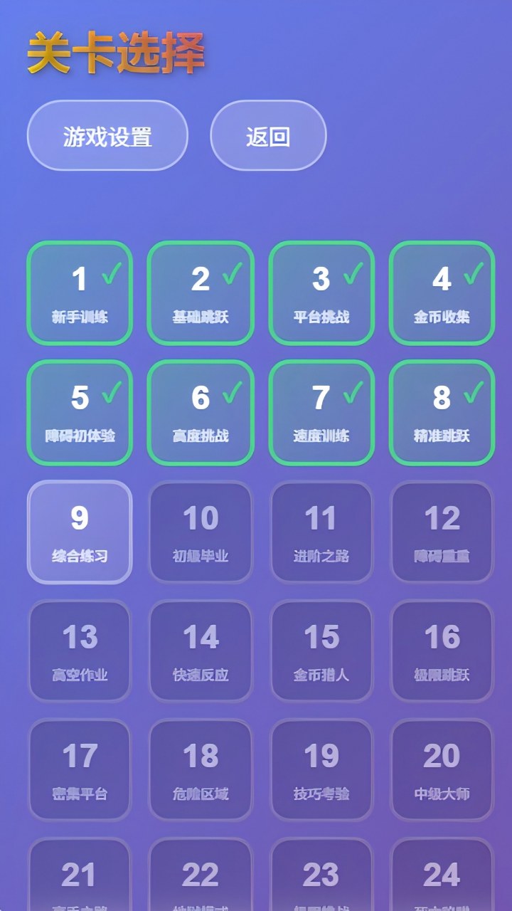 前一关通过后自动开放下一关,跃动玩家需通过精确操作完成关卡挑战。冒险需要先收集完所有金币